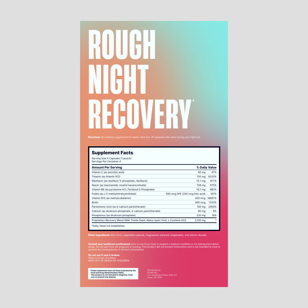 ELXXR’s Rough Night Recovery is your go-to hangover prevention. Packed with all-natural ingredients, these powerful pills work before the hangover even starts, so you can enjoy the night without paying for it the next day. Drink responsibly!